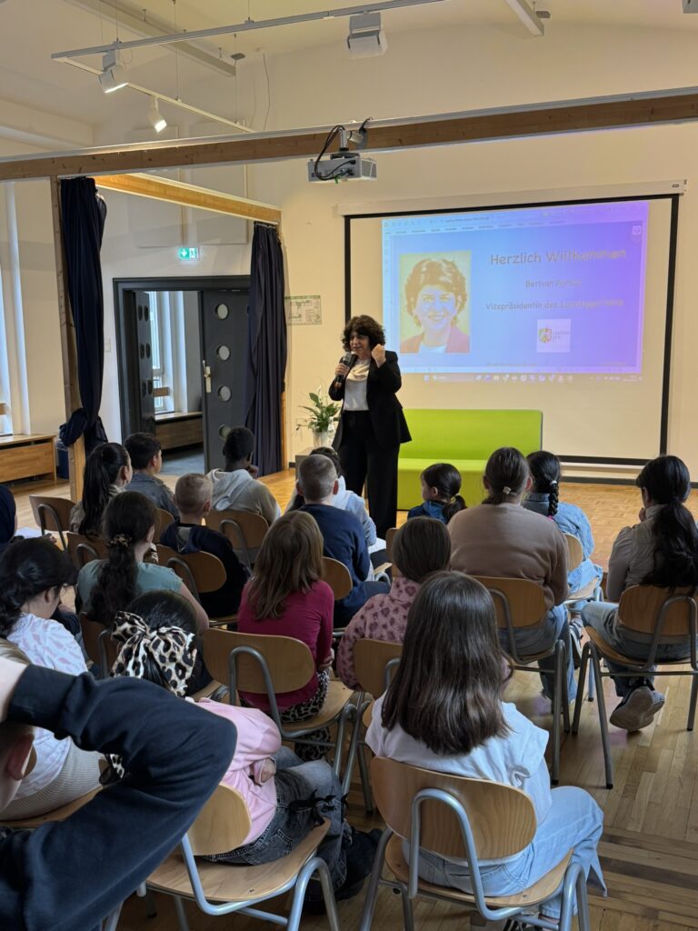 Unsere Grundschule durfte einen besonderen Besuch begrüßen: Die Vize-Landtagspräsidentin von Nordrhein-Westfalen, Berivan Aymaz, war zu Gast an unserer Schule. In einem interessanten Austausch erfuhren die Kinder mehr über ihre Arbeit und die Aufgaben im Landtag. Der Besuch war für alle Beteiligten eine spannende und bereichernde Erfahrung.