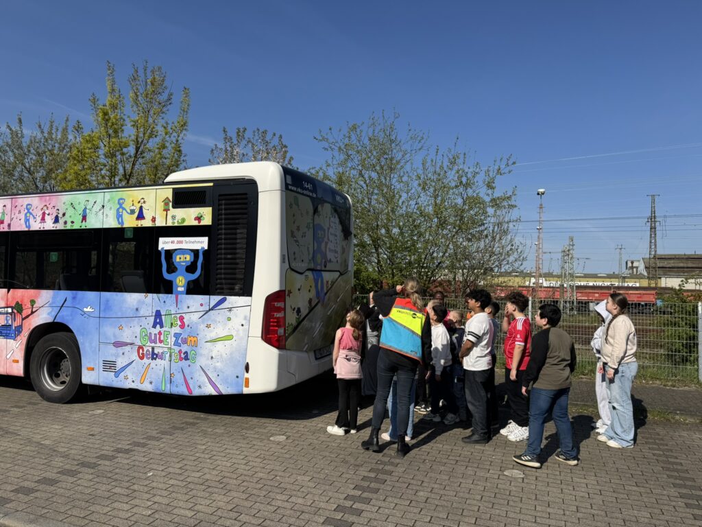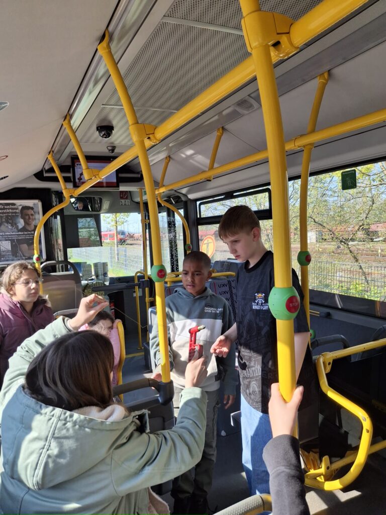 Im Rahmen der Busschule lernten unsere Viertklässler den richtigen und sicheren Umgang mit dem Bus kennen. Dabei übten sie, wie man sich an der Haltestelle und beim Einsteigen richtig verhält und worauf während der Fahrt zu achten ist. So wurden die Kinder gut auf ihren Schulweg mit dem Bus vorbereitet.